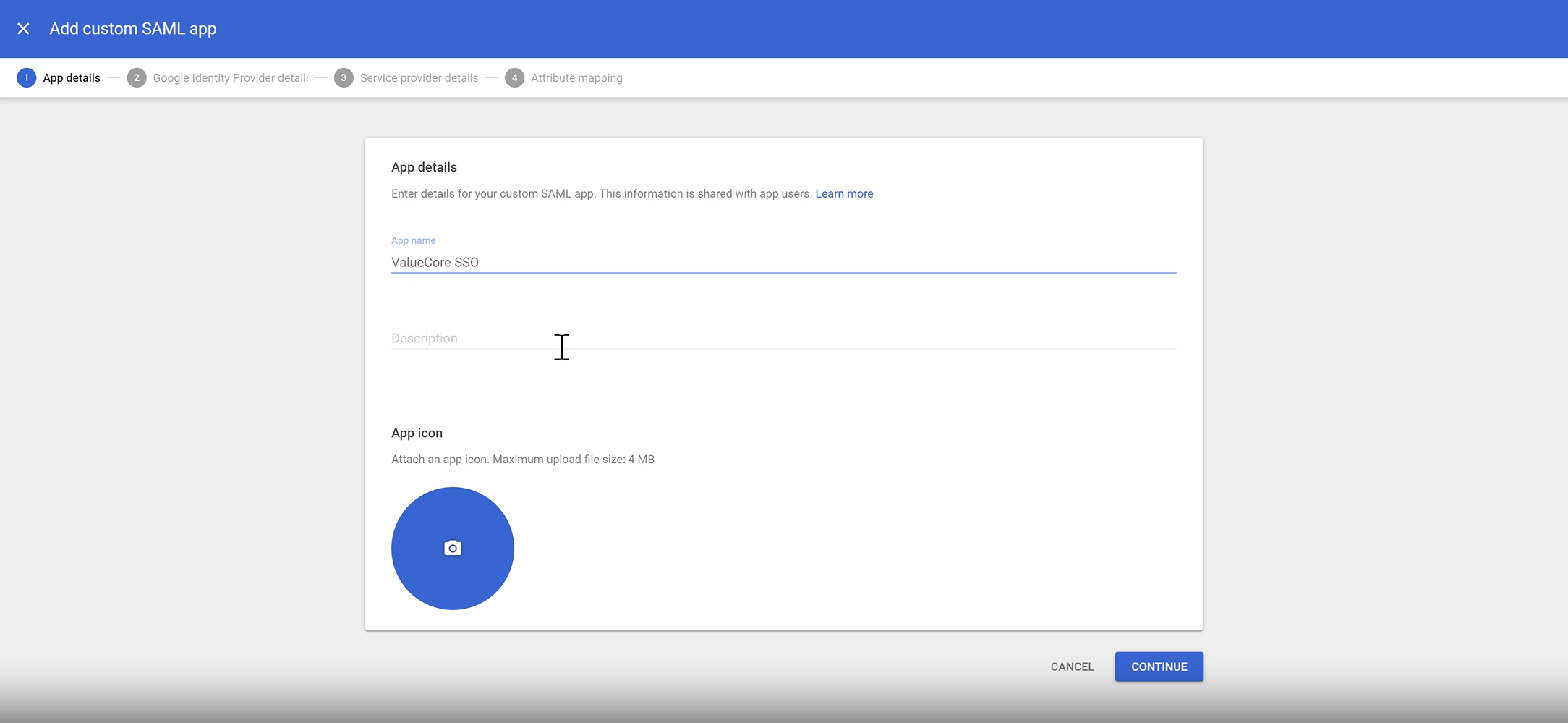 Step 7: Enter Google IdP Details in ValueCore