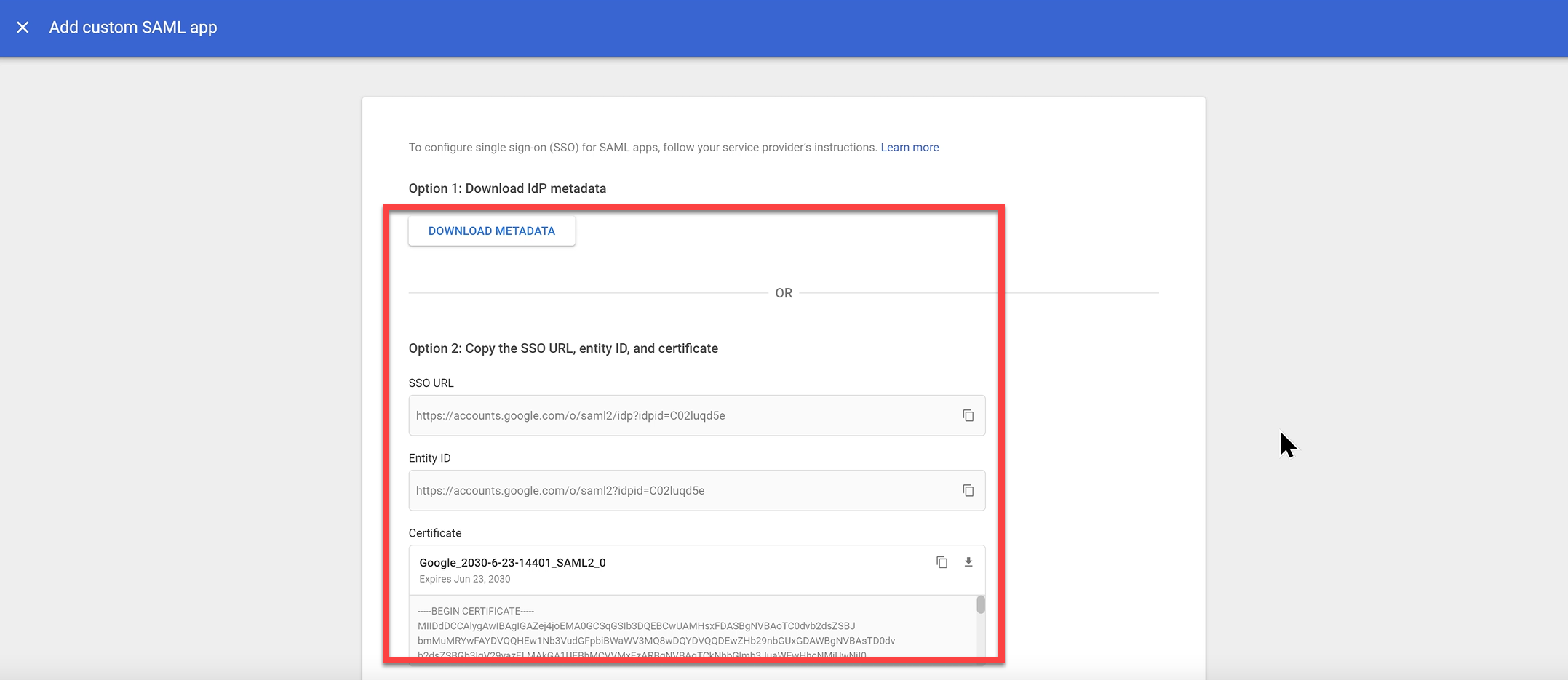 Step 3: Get Google IdP Details