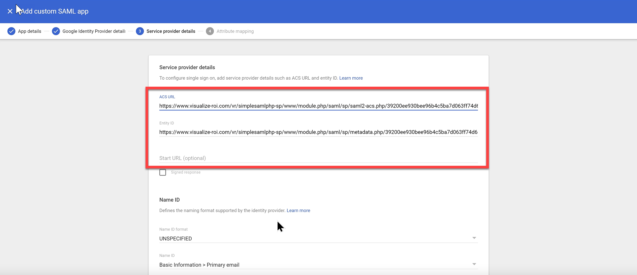 Step 4: Configure Service Provider Details in Google